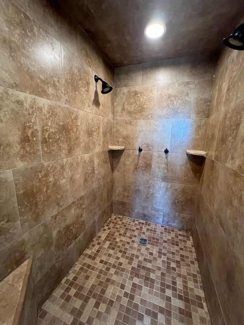 The spacious master suite is a true retreat, featuring a spa-inspired bathroom with a relaxing jacuzzi tub, double vanity, and a massive walk-in closet with abundant storage. Enjoy the warmth of two fireplaces—one in the main living area and another in the primary suite.