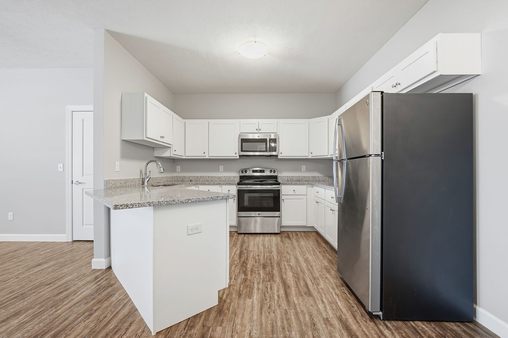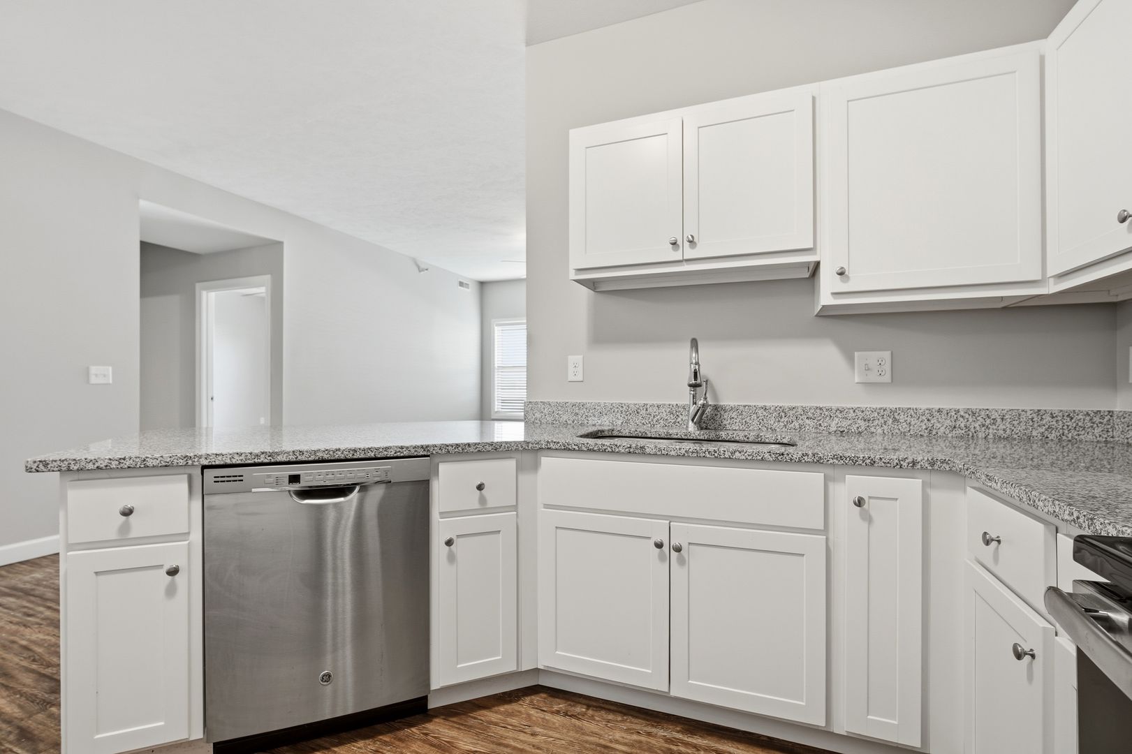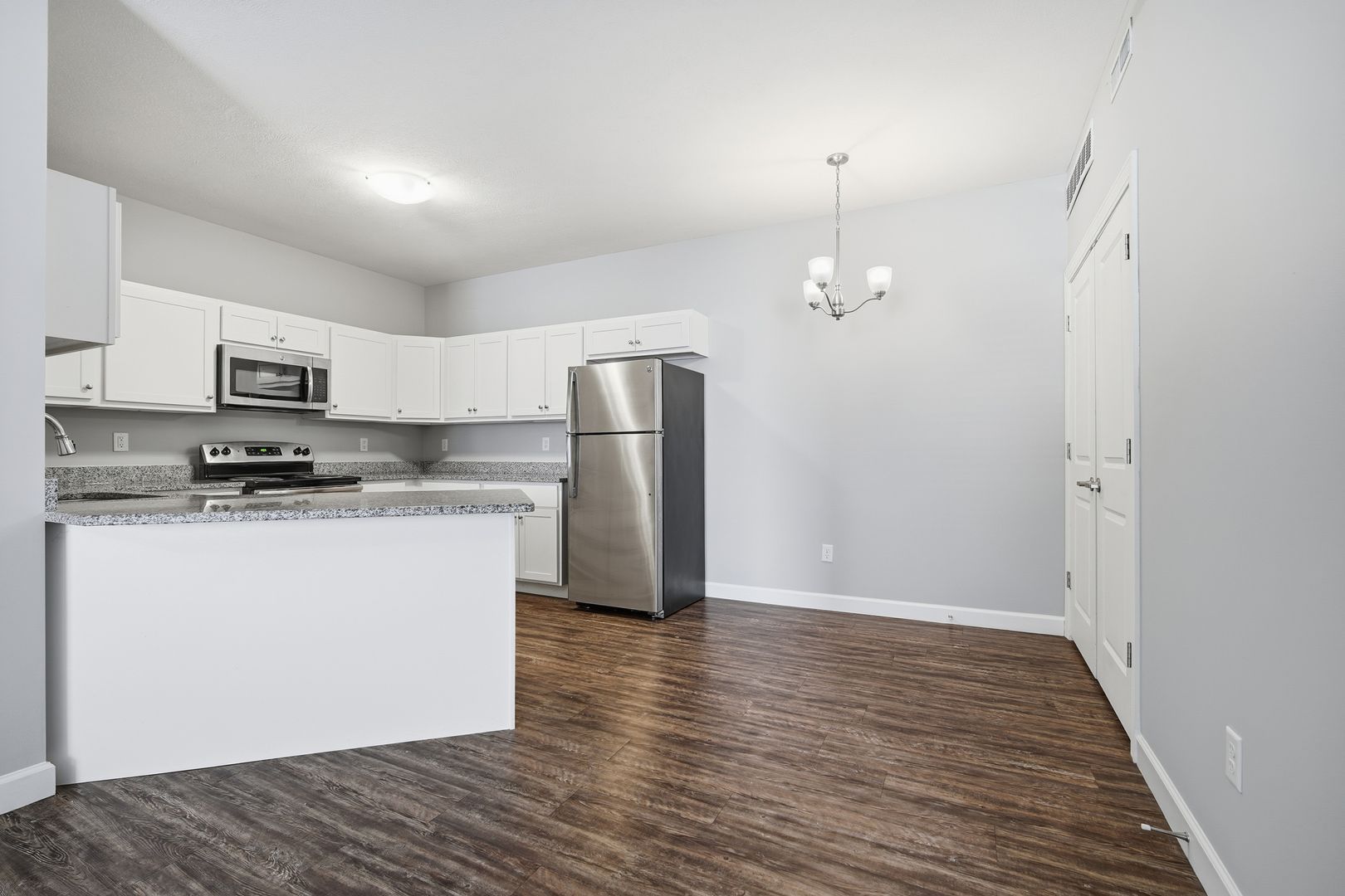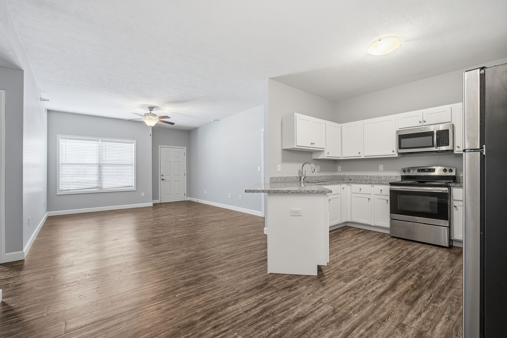 Experience modern living in these newer 1-bedroom, 1-bath apartments. Each unit features an updated kitchen with sleek granite countertops and stainless steel appliances. Enjoy the elegance of wood laminate flooring in the living room and kitchen. Spacious walk-in closets and a private entrance add to the convenience and comfort. High-speed internet, as well as a washer and dryer, are included for your convenience. Plus, these pet-friendly apartments ensure your furry friends are welcome. Don't miss out on these stylish and contemporary living spaces!
